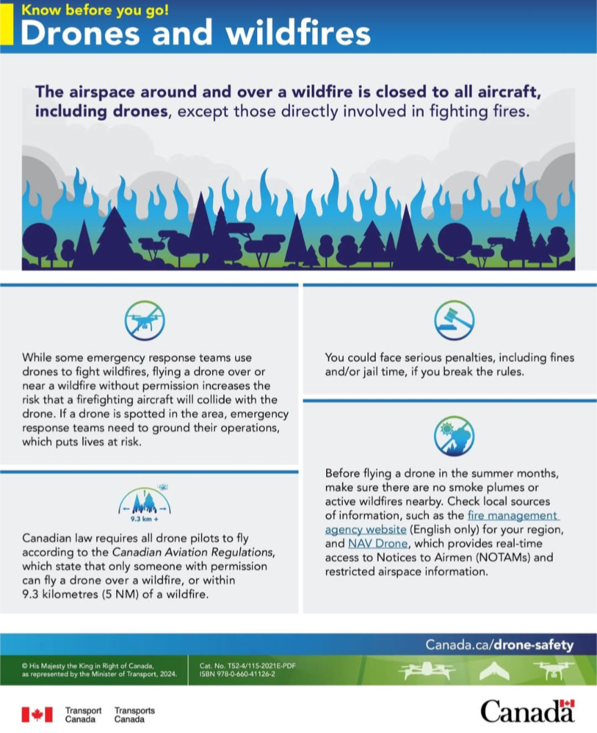 Do not operate drones in a wildfire area. It is illegal. It can interfere with our firefighting efforts. The fine is $25,000 under the Forests Act, there could be fines under federal legislation as well.