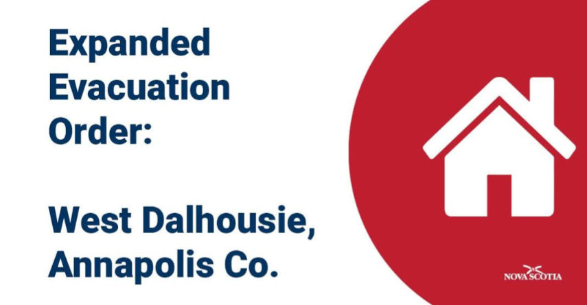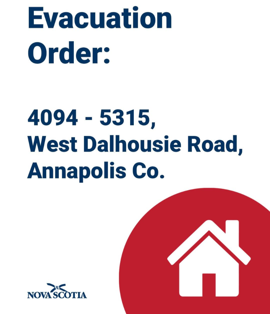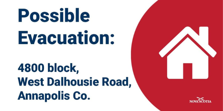 An evacuation alert has been issued for 4094 – 5315 West Dalhousie Road, Annapolis Co., due to wildfire in the area.